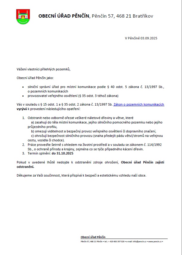 Výzva k odstranění náletových dřevin